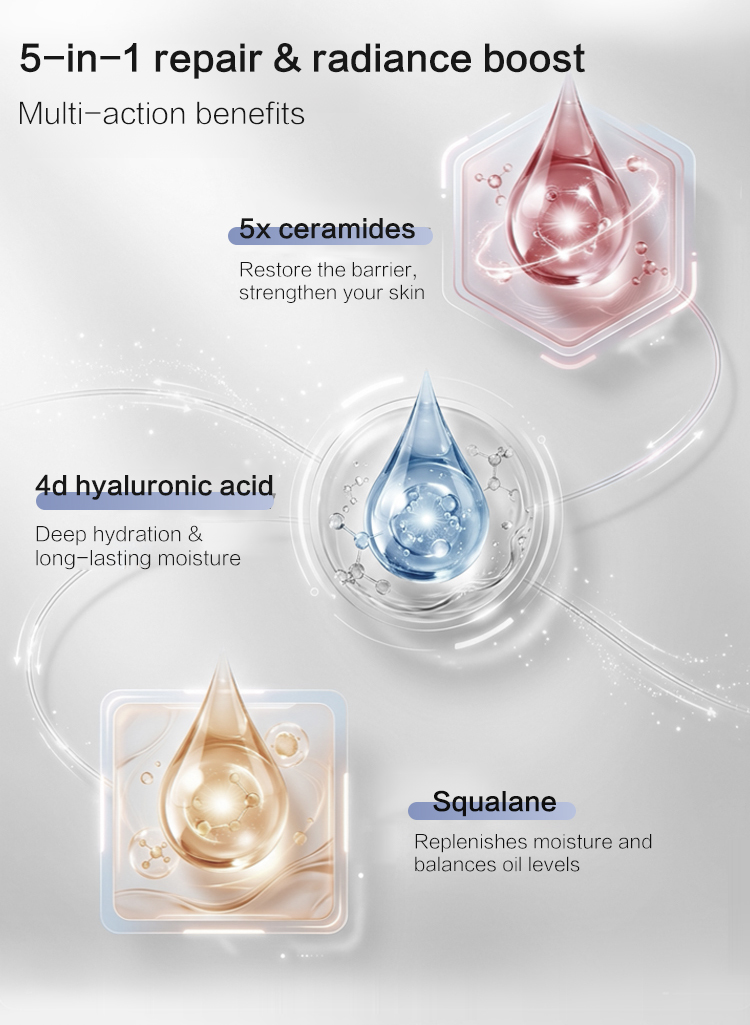 5X Ceramide Complex: Contains five essential ceramides (Ceramide NP, Ceramide AS, Ceramide NS, Ceramide AP, and Ceramide EOP) to help restore and strengthen the skin barrier.
